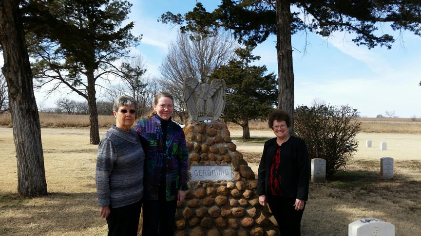 she and Nona Quinn and Mary Glen made to Fort Sill, Oklahoma. They are standing in front of